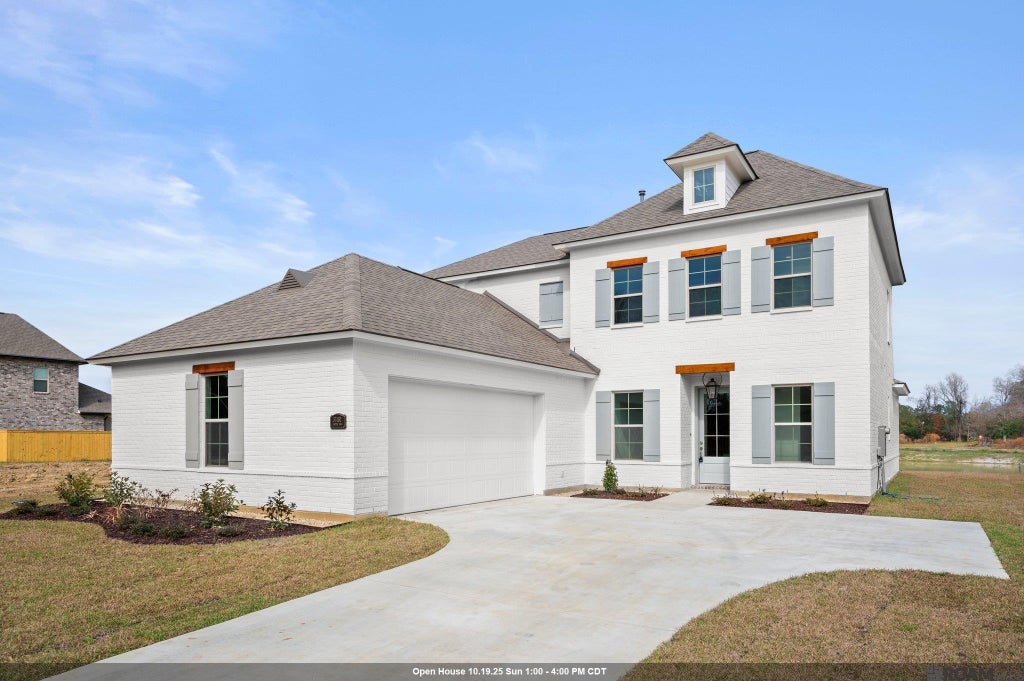 Belmont II D plan by Level Homes READY NOW in Delaune Estates! The Belmont is a stunning two-story home featuring 5 bedrooms, 4 full baths, a large open great room and a spacious loft and is perfect for a large or growing family! Step into the grand foyer which opens to the stunning wood tread staircase with iron balusters leading upstairs and the large open great room and kitchen. The great room is centered around a ventless gas fireplace with an Avenza White quartz surround and custom built-in wall units and is open to the dining and kitchen. The gourmet kitchen features painted custom wood cabinetry with extended upper cabinets, 5" cabinet hardware and under cabinet lighting, 3cm Avenza White quartz countertops, custom white Craft II picket tile backsplash, stainless steel appliances including a 36” gas cooktop, single wall oven and a built-in microwave, oversized island/breakfast bar with a 36” dual basin stainless steel farm sink and overhanging pendant lighting, and a walk-in pantry. The master bedroom is downstairs and includes a spa like bath featuring a separate 5' soaking tub and a job-built tiled shower, dual sinks with stone countertops, custom framed mirrors, separate water closet, and large walk around closet with custom wood shelving. Downstairs you will also find an additional bedroom with a full bath in the hall. Upstairs there is a large loft, 3 nice-sized bedrooms with walk-in closets, and 2 full baths (one being a Jack and Jill bath). The yard is professionally landscaped & fully sodded. Delaune Estates is one of Ascension’s newest communities in Dutchtown, built by Level Homes and located off of HWY 73 and I-10! There are 83 homesites in the first phase and will have 237 total once completed. Phase 2 lots are now selling!! This development features multiple ponds, waterfront lots, bridge and a community pool with pavilion. Various home sites and floor plans to fit all of your needs. Come take a tour of this vibrant new community today!