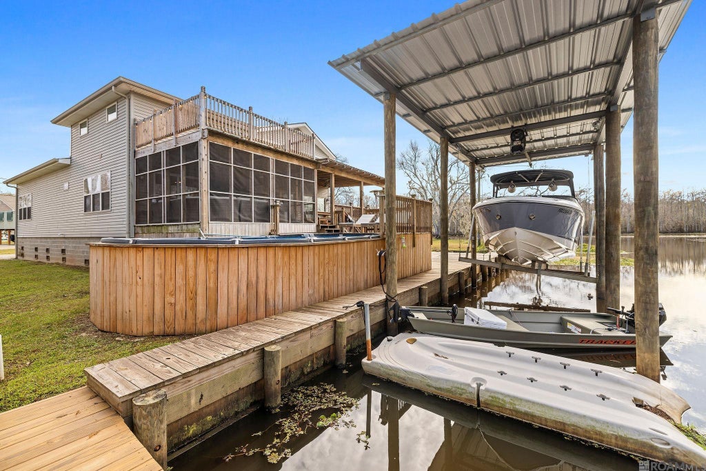 Welcome to your new luxurious waterfront retreat, where endless summer nights await! This completely renovated 4-bedroom, 3-bathroom home, offers the perfect blend of modern luxury, comfort, and serene outdoor living. Nestled on a prime waterfront lot with breathtaking views of Blood River, this property is an entertainer’s dream and a tranquil haven. Outdoor Highlights: • Spacious above-ground pool. • Private boat slip with lift: Effortless access to the water. • Screened porch area: A serene space to enjoy the outdoors in comfort. • Large deck: Ideal for outdoor entertaining. Main Level Features: • A spacious living room flooded with natural light from many large windows. • Open-concept eat-in kitchen with all appliances. • New flooring and fresh paint throughout. • A primary suite with an en-suite bath, plus a guest bedroom and full bath. • An expansive upper deck off of the kitchen. Ground Level Features: • Additional living space, ideal for entertaining or accommodating guests. • A second full kitchen for added convenience. • A "bunk-house" style bedroom, perfect for extra guests and kids. • A third full bath and additional Bedroom. Additional Amenities: • A two-car partially enclosed carport for secure parking. • Close proximity to Warsaw Marina and the Tickfaw River. Whether you're looking for a full-time residence or a weekend getaway, this home delivers the ultimate in waterfront living. Schedule your private showing today and experience all it has to offer! **SEE DOCUMENTS FOR A LISTING OF ALL UPGRADES**