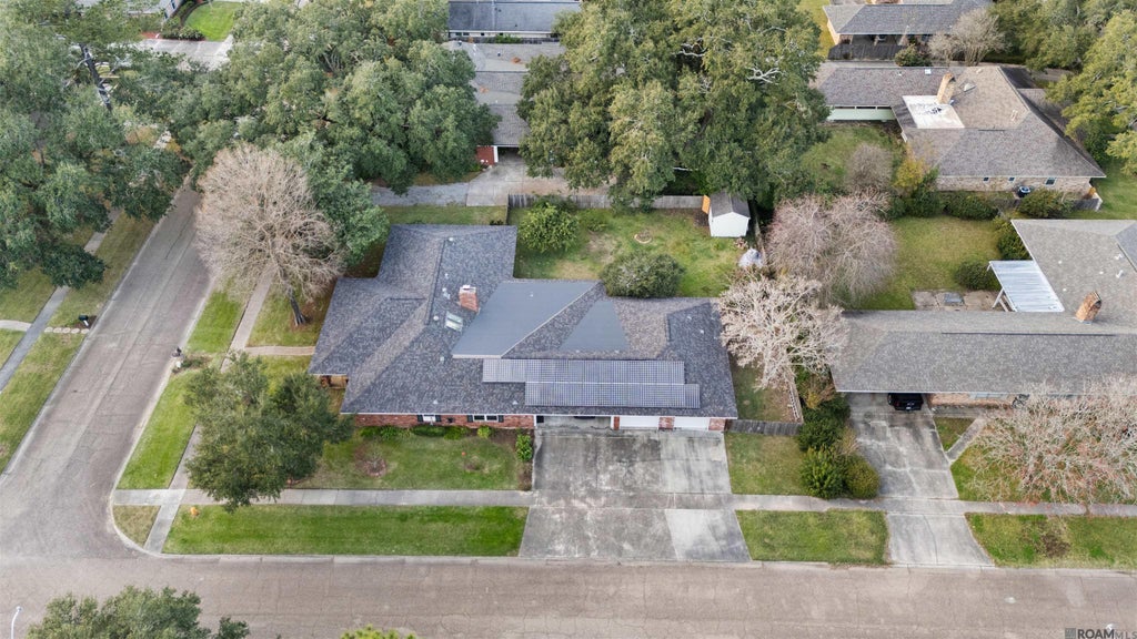 FRESH INTERIOR PAINT!!! 5 bedrooms including a mother-in-law suite plus an office!!! Located in lovely Plantation Trace subdivision, this home is near LSU and in flood zone X. The den is large and full of natural light because of sky lights but cozy because of a fireplace. The large primary bedroom has lots of closet space and an impressive en suite with large walk-in shower and separate tub. The half bath provides a space for guests. This home has solar panels for lower energy bills. Topping it all off, you'll have enclosed garage parking for 4 vehicles!!!