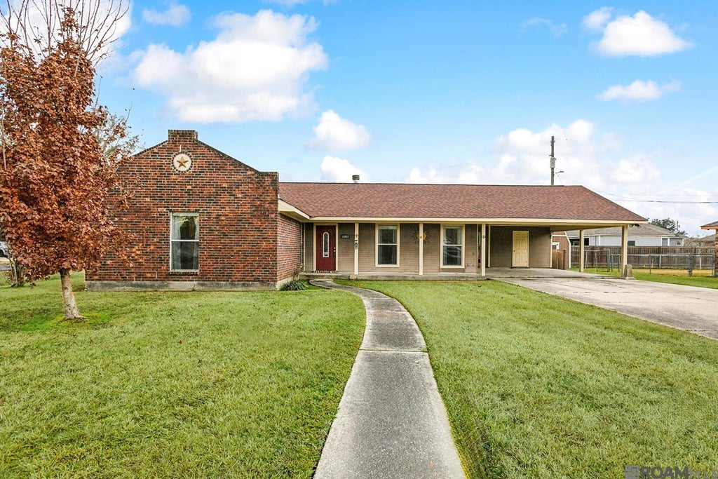 Step into your new dream home, meticulously cared for and move in ready! The open concept floor plan allows easy flow from the living room to the dining room and into the kitchen, perfect for entertaining. Whether you want to curl up in front of the gas fireplace or work on culinary creations in the spacious kitchen, this is the home for you. The kitchen features beautiful custom cabinets, stainless steel appliances, and a large utility room with shelves for additional storage. The primary suite includes an en suite bathroom with a standing shower. The expansive backyard is the perfect blank slate for any outdoor projects you want to tackle this spring just in time to host your first crawfish boil. A 14’x16’ shed and storage room under the two car carport provide ample space for toys, tools, and projects. Alleviate your insurance woes with a 2022 roof! Situated in the heart of Zachary, this home is minutes from great schools, delicious restaurants, and has easy access to the interstate.