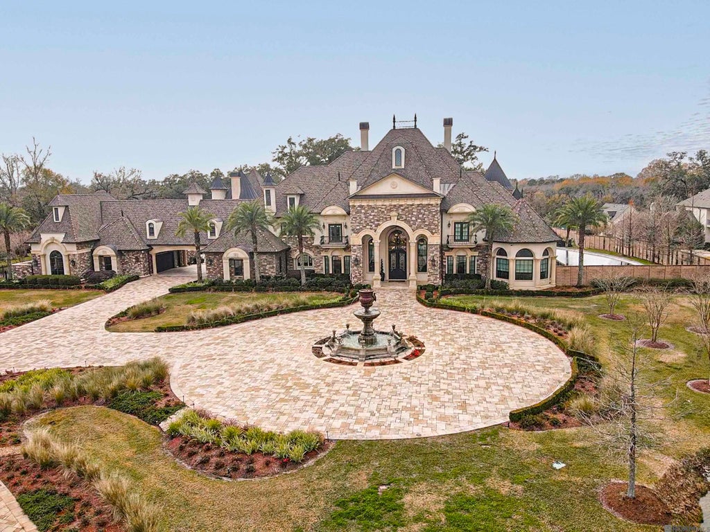 Private Luxury Compound–Over 22,000 Sq. Ft. of Unparalleled Elegance, A rare opportunity to own one of Baton Rouge’s most extraordinary residences, this gated estate is set on 6 private acres featuring towering Live Oaks, a koi pond, and a stocked 1.4-acre pond. A winding drive flanked with grand fountains welcomes you, setting the tone for the architectural excellence within. The two-story foyer makes a striking first impression, featuring a grand double curved staircase and soaring ceilings. Just beyond, the formal living room is crowned by a hand-painted dome masterpiece, a true statement of artistry and elegance. The main residence offers 5 generously sized bedrooms, each with its own full bath and walk-in closet, ensuring comfort and privacy. Designed for entertaining on a grand scale, the estate features a game room with a Brunswick two-lane bowling alley, a private home theater, a wine cellar, a beer cooler, and a state-of-the-art Crestron smart home system. An elevator provides seamless access to all levels. The primary suite is a private sanctuary, anchored by a 5,000-gallon double-sided built-in fish tank, offering a mesmerizing view from both the formal living room and the suite. This retreat includes a spacious sitting area, a wet bar, a gym, and a spa-like bath, blending luxury with tranquility. The outdoor experience rivals the finest resorts. A 1,500 sq. ft. pavilion serves as a full outdoor kitchen, living, and dining space, complete with a hibachi grill, pizza oven, high-end appliances, and a grand fireplace. Phantom screens allow for year-round comfort, while the resort-style infinity pool boasts a grotto, rock waterfall with a slide, spa, lazy river & swim up bar, creating an unparalleled outdoor retreat. Perched above the pavilion, a spacious guest retreat provides private accommodations for extended stays. The estate includes dual garages (5 spaces + workshop) connected by a large Port Cochere, grand motor court, and a whole-home generator.
