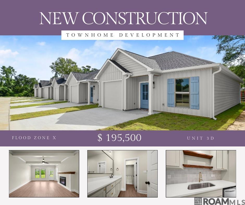 **BRAND NEW + MOVE IN READY** Residing in the new townhome development of Creek Commons, this coastal cottage perfectly blends warmth and sophistication, creating a space that is both intimate and inviting. Located in the Livingston Parish School System and flood zone X, this home will feature the following: fenced in backyard, quartz countertops, stainless steel appliances, recessed electric fireplace with mantel, luxury vinyl plank flooring resembling Oak, soft creamy colors displayed throughout, and a one-car garage. The thoughtfully designed layout offers a sense of privacy while maintaining an open-concept, giving the seamless living we all love. It’s the perfect setting for memories to unfold, so come on home. **Builder to contribute towards closing costs with acceptable offer**