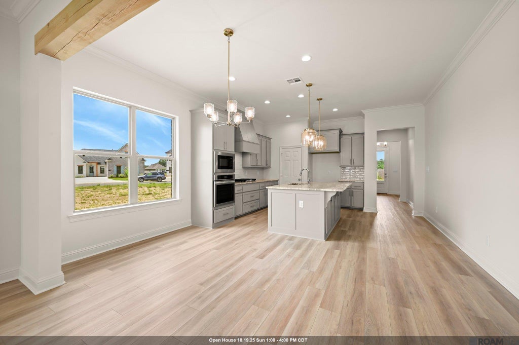 4 bedroom / 3 bath Dawson floorplan is a one-story plan with just over 2200 sq feet of living area. You will enter the home into the foyer which leads you into the open kitchen, dining and living room. The gourmet kitchen has custom painted cabinetry with 5-inch hardware pulls and under cabinet lighting, large center island with single basin stainless steel sink and overhanging pendant lights, 3cm Fantasy Brown marble countertops, white gloss subway tile backsplash, stainless appliance package including a 30” gas cooktop, single wall oven and built in microwave and a walk-in corner pantry. The spacious living room is centered around a vent-less gas fireplace with marble surround and has great views of the large covered rear porch and yard. The master suite is very spacious and has a spa-like bath with separate dual vanities, framed mirrors, separate soaking tub with marble surround, wall tiled shower, and a spacious walk-in closet. Bedrooms two and three are located at the back of the home and share a hall bathroom with dual sinks. Bedroom four is located at the front of the home and has its own en-suite bathroom and a walk-in closet. Large laundry room and mudroom with space for an “optional” desk and/or built in mud bench located off the garage entry. Professionally landscaped and fully sodded. HOME IS MOVE IN READY! Delaune Estates is one of Ascension’s newest communities in Dutchtown, built by Level Homes and located off of HWY 73 and I-10! Total of 245 lots. This development features multiple ponds, waterfront lots, and a STUNNING COMMUNITY POOL with pavilion!