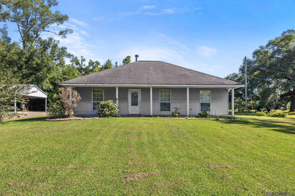 Assumable Interest Rate in the 3’s!! Discover the charm and functionality of this well kept home on 1 acre in St. Amant, complete with a large metal workshop and multiple covered parking areas! This home offers an open layout with spacious living, kitchen, and dining areas that are perfect for entertaining. The kitchen features a breakfast bar with stool seating, slab granite countertops, built in microwave, electric flat-top stove/oven, and lots of cabinets. You'll love the stained concrete flooring throughout, both stylish and low-maintenance. The open split floor plan provides privacy with a primary suite that includes a walk-in shower, double vanity, and large closet. Two additional bedrooms share a well-appointed hall bath. Enjoy a large laundry room with space for storage or a secondary fridge/freezer setup. Out back, you'll find a double rear carport that opens to the backyard, offering plenty of room for parking, outdoor activities, or even future additions. The workshop includes two more covered parking spaces, perfect for tools, toys, or hobbies. With simple landscaping, mature trees, and a quiet setting, this property offers space, function, and flexibility all in a great location. Plus, a convenient kayak launch just 3 minutes away makes it easy to enjoy outdoor recreation on the water. Schedule your private showing today!