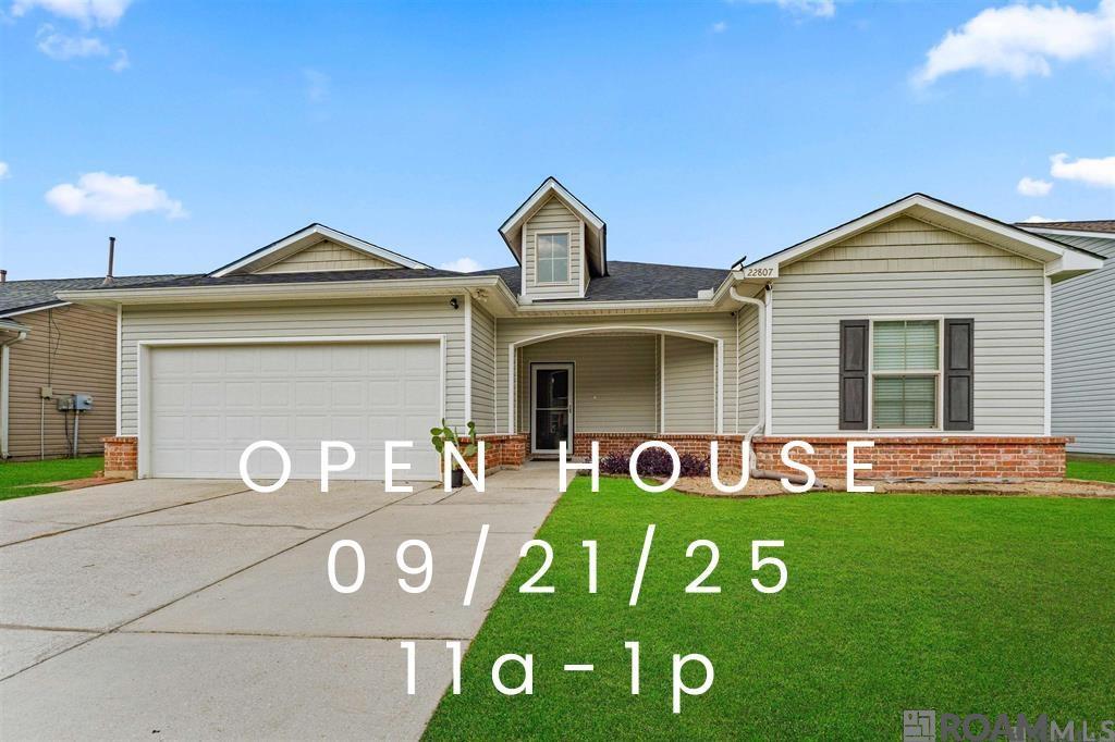 Whole home generator! Located in Flood Zone X - No flood insurance required! This charming 3-bedroom, 2-bath home features an open main living area with a split floor plan that offers both privacy and functionality. LVP and tile flooring throughout-no carpet! The kitchen features stone countertops, tile backsplash, an island, and dining nook with access to the backyard. The primary suite features an ensuite bathroom with shower/ tub combo and a spacious walk-in closet. Additional highlights include a whole-home generator, an oversized driveway allowing ample parking, and an extended rear patio perfect for entertaining! Located just 15 minutes from I-12 and all the shopping, dining, and entertainment at the Denham Springs & Juban Crossing exits, this home combines comfort and practicality in a great location.