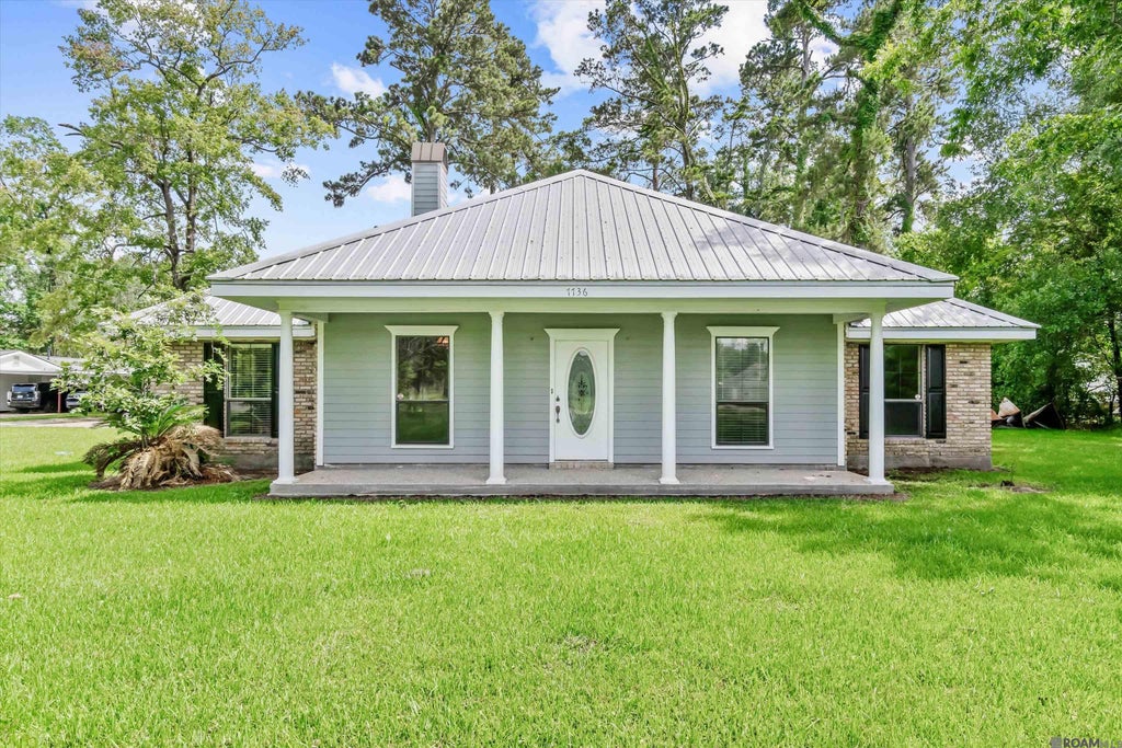 Nestled on a beautiful 1.35-acre tree-shaded lot, this 3-bedroom, 2.5-bath home offers the perfect blend of classic Southern charm and modern comfort. From the inviting front porch to the spacious rear carport, every detail has been thoughtfully designed for relaxed living. Inside, you'll find elegant crown molding, rich wood and tile flooring throughout, and a stately corner gas fireplace anchoring the cozy living room. A wall of windows floods the space with natural light, creating a warm and welcoming atmosphere. The bright kitchen is a dream—featuring granite countertops, a gas range, an abundance of crisp white cabinetry, and an eat-at breakfast bar ideal for casual dining or entertaining. Retreat to the spacious primary suite, complete with a large soaking tub, a custom tiled shower, and dual vanities. Outside, enjoy peaceful mornings or evenings on the concrete patio or the classic Southern-style front porch. With a two-car rear carport, generous outdoor space, and a setting that feels like a private retreat, this home truly is a rare find. *Structure square footage nor lot dimensions warranted by Realtor.