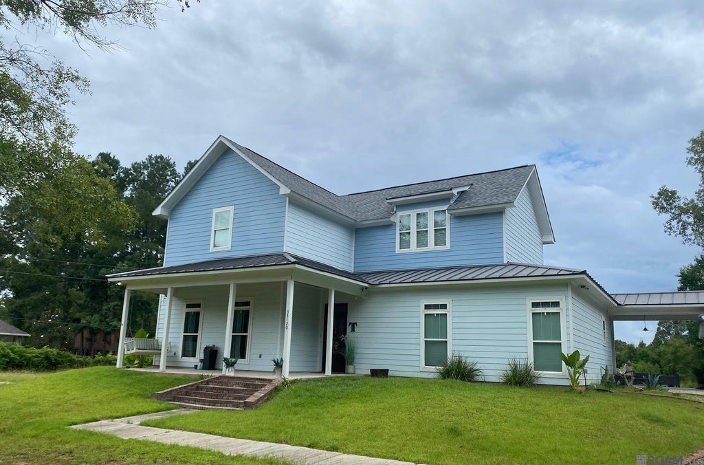 Welcome to country living. This stunning custom-built home, on 6.07 acres of serene land has 3 bedrooms and 2 1/2 bathes. The exterior is Hardi Plank for beauty and low maintenance. The kitchen features beautiful custom epoxy countertops, sleek stainless-steel appliances, large island for food prep and serving for entertaining AND opens to the dining and living areas. There are elegant crystal lighting fixtures throughout the home. Upstairs there are 2 bedrooms and a spacious walk-in area which could be converted to create a media room, additional bedroom or whatever suits your needs. The master bath features a luxurious soaking tub and a large walk-in closet. This home is designed for both comfort and functionality. This home has lots of storage. Every inch of this property has been meticulously maintained—this is a must-see home that combines rural charm with modern sophistication.