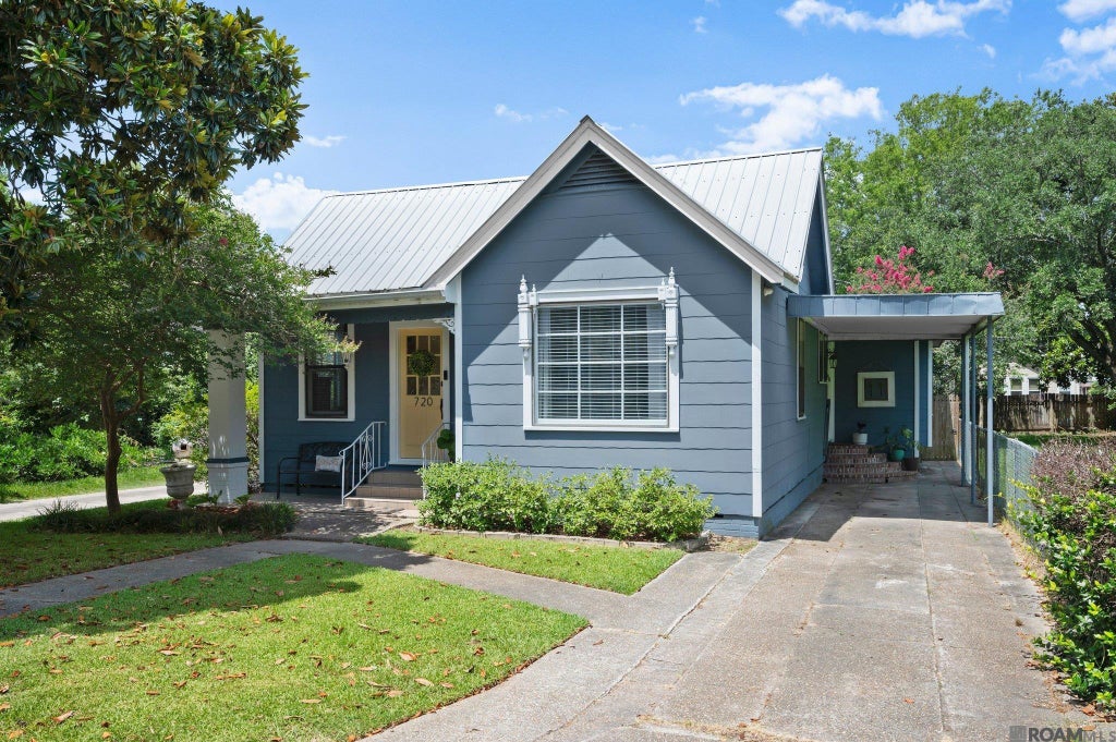 Precious, updated cottage full of charm and character with 3 Bedrooms, 2 Baths in the heart of Capital Heights. Gleaming wood floors meet you as you walk in the front door. Spacious living room that connects to an updated kitchen with painted cabinets, quartz countertops, and stainless appliances. There is also a dedicated pantry. The den provides a wood burning fireplace with gas starter, ample dining space, and leads out to the fully fenced backyard with your very own orange tree. Great space for entertaining! The primary bedroom has a large closet and bathroom ensuite with double sinks, quartz countertops, and updated tile tub surround. Additional two bedrooms are well sized and have good closet space with built-in shelving. The front bedroom has a nook that would be a fantastic place for an office or reading spot. Hall bath is also updated with extra storage. Tons of natural light throughout the home. Stay dry as you park under the carport with a side entrance to the home. There is also additional parking in the front. New HVAC system installed in 2022. The exterior was painted in 2024. You will love the location - walk to Calandro's, MidCity Beer Garden, Curbside Burgers and so much more. Convenient to LSU, BRCC, Towne Center, restaurants, shopping, and entertainment! This home is a MidCity Gem! Measurements not warranted by Seller/Broker/REALTOR®.