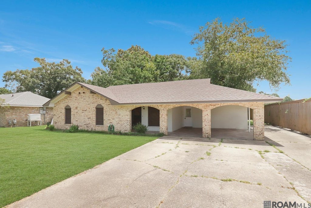 Located on the South Side of Denham Springs on Pete's Hwy, this beautifully updated property boasts a large lot with a fenced in back yard containing fruit trees and 2 storage sheds, one of which has power and window unit. Walking inside from the 2 car car-port you will see the nice kitchen with granite counter tops, a large peninsula and kitchen sink with a window looking out to the back yard. The dining area has crafted ceiling beams and french doors for inside/outside entertaining. As you walk down the hall you pass 2 bedrooms and the first bathroom updated with matching granite. Continuing through to the primary bedroom and en suite with walk in closet and updated bathroom with tiled shower. Come see this wonderful home for yourself.