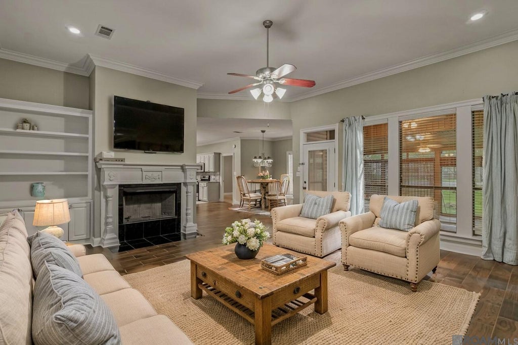 Charming 3 bed, 2.5 bath home blends comfort and style across 1,768 sq ft of living space. The open floor plan is filled with beautiful natural light and centered around a cozy fireplace. The kitchen showcases sleek stainless-steel appliances, abundant cabinetry, and a convenient pantry. Fridge to remain! Enjoy year-round relaxation in the oversized enclosed sunroom—perfect for morning coffee, lazy afternoons, or evening gatherings. The sunroom was also recently refurbished with treated wood and has a new a/c unit. New HVAC compressor installed in 2022. The primary bedroom offers a peaceful retreat with TWO walk-in closets and a spa-like bath featuring a jetted tub, double vanity, and separate shower. A privacy fence surrounds the spacious backyard, and the 2-car garage adds convenience and storage. 100% Financing Available! Conveniently located only minutes from dining, Sam’s, Bass Pro, I-12, and so much more! Call to schedule your private showing today before it is too late!