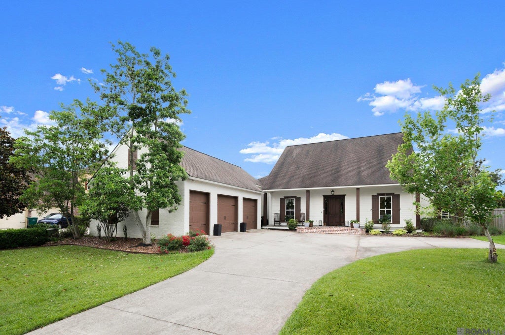 Beautiful Acadian Style Home in Desirable Copper Mill Golf Community in the highly desirable Zachary School District. This lovely home features 4 bedrooms, 3.5 baths, a separate office and an open floor plan. Upon entering the foyer you will notice the gorgeous interior brick work. To the left of the foyer you will find the formal dining area and the living room straight ahead. The living room has a charming fireplace, built-ins, crown molding and wood floors. The spacious kitchen and breakfast are open to the living room. The kitchen features custom wood cabinets with tons of storage, s/s appliances, large built in refrigerator/freezer, and island, granite countertops, gas cooktop and a breakfast bar. Off the kitchen you will find a 1/2 bath, a mudroom area, the laundry room with sink and closet and the garage entrance. The primary bedroom is located towards the back of the home off the living room and off that same hall you will find a separate office with built-in desk areas. The primary is very spacious and has a ensuite bath. The bath has a clawfoot tub, separate custom shower, dual sinks, a lot of counter space, a vanity/makeup area and a large walk-in closet with built-ins. The other 3 bedrooms are located towards the front of the home off a separate hall. 2 of the bedrooms share a full bathroom on the same hall and the 3rd additional bedroom has an ensuite bath and walk-in closet. The home has neutral colors throughout. The large screened-in patio with a fireplace and deck make entertaining a dream. This home also features an attached workshop area off the 2 car garage and a fully fenced backyard. This home has a brand new roof!