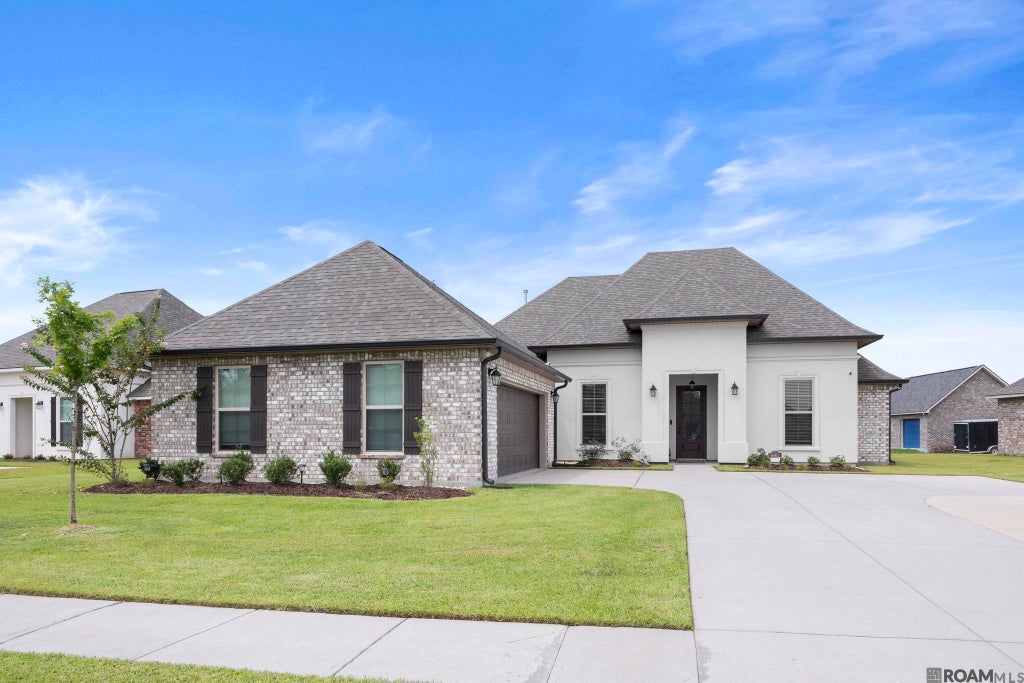 Welcome to this beautifully enhanced Renoir IV B floor plan in the highly desirable Pelican Crossing community! With 4 bedrooms, 3 full bathrooms, and over 2,600 sq ft of thoughtfully designed living space, this home offers comfort, functionality, and style in every corner. Step inside and feel instantly at home. The warm color palette, abundant natural light, and open-concept layout create a welcoming atmosphere throughout. The spacious living area features wood-look tile flooring, crown molding, and a ventless, gas fireplace with a quartz surround — perfect for cozy evenings or entertaining guests. The kitchen is a true centerpiece, designed with quartz countertops, a walk-in pantry, a large island with seating, under-cabinet lighting, and a full stainless appliance package (including a gas range). The soft lighting and warm finishes make it both elegant and inviting. The primary suite is tucked away for privacy and includes bedside light switch controls for the recessed ceiling lighting, a spa-like bath with dual vanities, a soaking tub, a separate shower, and a spacious walk-in closet. The home also features a formal dining room, a breakfast area, and a versatile mud bench at the back door for daily convenience. Additional owner-added upgrades include: Full gutter system, Extended concrete back patio with custom cover, Extended driveway for added parking, Ceiling fans inside and out, Outlets added at wall mount height for TVs in all bedrooms. Energy-efficient features like a tankless water heater, low-E windows, and a post-tension slab offer peace of mind and long-term savings. Enjoy all the benefits of life in Pelican Crossing — including TWO community pools, and sidewalks that make the neighborhood truly feel like home. Conveniently located near top-rated schools, dining, and commuter routes — this home is move-in ready and full of thoughtful details you’ll appreciate every day. Schedule your private tour today!