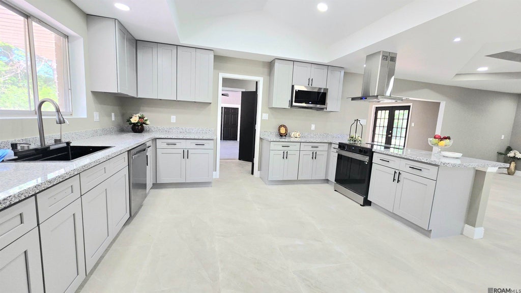 This huge house with 2,457 living sf, has 3 bedrooms, 2.5 bathrooms completely renovated and beautiful. It is nearby Broadmoor Elementary & High School, St. Thomas More School, Church, shopping center, and bank. It has new electrical panel, new water heater, fresh paint inside out, new switches & outlets, new light & plumbing fixtures, ceramic and wood floor throughout (No Carpet). The open floor plan: kitchen overlooks living and dining area, brand new stainless appliances: slice-in stove, microwave, dish washer, beautiful kitchen hood with an island, granite countertop, new & plenty cabinetry, and multi- functional kitchen sink. The Living, dining, and kitchen has beautiful tray ceiling with ceiling fans and a lot of recess lights. You will love two huge customed walk-in showers in master and hall bathroom. Both showers have slice shower doors, beautiful custom ceramic wall all around, and shower heads. All bedrooms have ceiling fans, and wood floor. The house sits on a big lot, long driveway, and located in X zone, doesn’t require to buy a flood insurance, never get flooded. A must see.