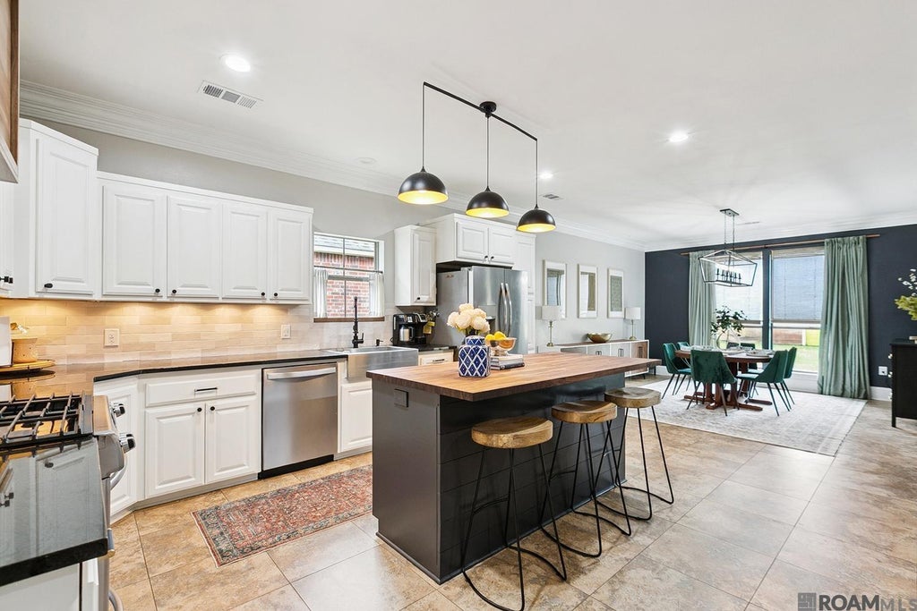 Step Inside Your Dream Home in Pointe South! This beautiful custom 4 Bedroom, 3 Bath home with a bonus room offers the perfect combination of comfort, quality, and style in one of Zachary’s most desirable neighborhoods. From the moment you enter, you’ll appreciate the rich heart pine wood floors, stacked crown molding, and wide baseboards that bring warmth and character throughout. The open concept floor plan fills the home with natural light and provides a seamless flow between the living, dining, and kitchen areas—perfect for entertaining or everyday living. The kitchen features stainless steel appliances, ample cabinet space, and a thoughtful layout designed for function and style. The spacious master suite includes a relaxing sitting area and a spa-like ensuite bath with a soaking tub, walk-in shower, dual vanities, and a custom walk-in closet. A split floor plan ensures privacy, while the bonus room adds flexibility for a home office, playroom, or guest space. Beautifully updated light fixtures, hardware, and finishes throughout create a fresh, modern feel. Step outside to enjoy a newly fenced backyard, storage shed, and covered patio—perfect for entertaining or unwinding after a long day. Located in a well established subdivision with sidewalks and a community pool. No flood insurance required. Truly move-in ready! Schedule your private showing today!
