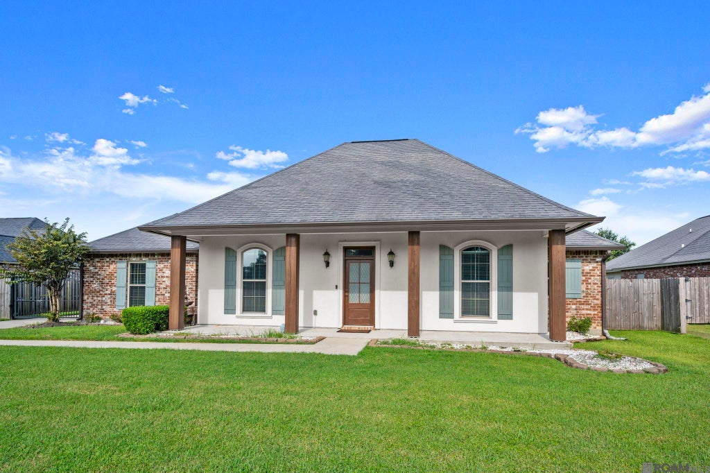 This dynamic custom built 4 bedroom 3 bathroom home on one of the largest lots in the neighborhood really does have it all. As you enter the home you will notice the inviting front porch, light airy feel of the open floor plan. The family room has a gas fireplace with a triple split floor plan which offers over 2300 square feet of living space. All of the common areas and bedrooms feature wide plank hardwood flooring. No Carpet! The kitchen as well as all bathrooms have 3cm slab granite accentuated by beautiful lighting, elegant finishes, and oil rubbed bronze hardware. The large primary bedroom is the perfect retreat that opens up to the master bath boasting dual vanities, separate shower, soaking tub and a large closet. The kitchen has stainless appliances, gas stove, an oversized island and tons of storage space. The back porch has covered and uncovered areas all overlooking the stunning salt water pool. The yard is fully fenced, there is a two car garage and storage space