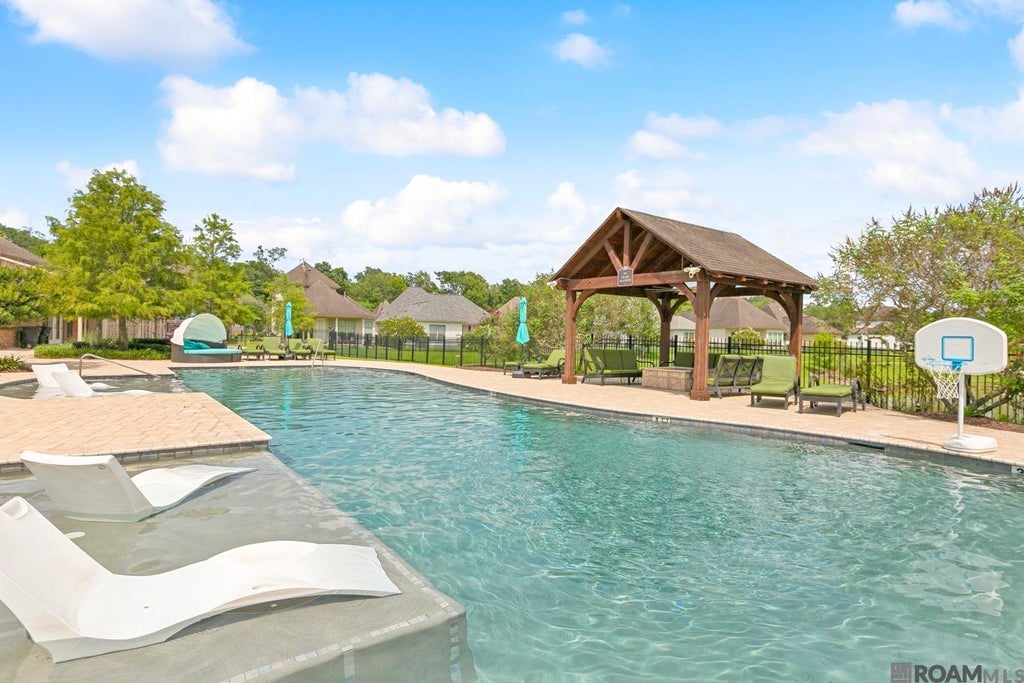 4 bedroom, 3 bath home in University Villas! One of the largest homes in the neighborhood, this beautifully appointed property offers sophistication, space and is just steps away from the community pool and clubhouse. This home features expansive an open-concept layout where rich hardwood flooring, a cozy fireplace and abundant natural light. The designer kitchen features a custom slab granite island with breakfast bar, gas range, custom cabinetry, generous pantry and all appliances will remain for a seamless move-in experience. The luxurious first-floor primary suite is a true retreat, offering ample space for a king-sized bed and an ensuite bath complete with an oversized soaking tub and stand alone shower and an impressive walk-in closet with custom built-ins. Three spacious bedrooms upstairs and a well-appointed full bath with dual vanities perfect for family or guests. Additional highlights include a spacious laundry room, two-car garage, and a fully fenced backyard overlooking a private pond. Enjoy secure gated access with surveillance, a serene lake with walking trails, and resort-style amenities. All just minutes from LSU, interstates, fine dining, shopping, and vibrant city attractions! Schedule your showing today!