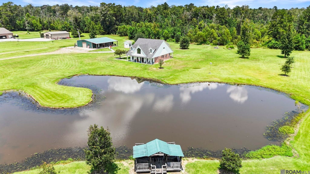 Welcome to your dream retreat in Greenwell Springs! Priced below appraisal, this stunning 4 bedroom, 3.5 bath home with an office offers over 3,400 sq ft of living space and is perfectly situated on 5.71 acres in flood zone X along a private road. Designed for both comfort and efficiency, the home features spray foam insulation in the attic and exterior walls for year-round energy savings. Step inside to find a spacious, functional layout ideal for both everyday living and entertaining. Downstairs, you’ll discover the primary bedroom with a large en-suite bathroom and a walk-in closet with a center island, a formal dining room off the foyer, a half bath, an office or flex space, a laundry room with a mudroom bench and extra storage off the rear entrance, and an open-concept living and kitchen area perfect for gatherings. Upstairs offers three additional bedrooms—one with its own en-suite bathroom—plus an office space and the third full bathroom. There is attic access in multiple areas and a loft for even more storage. Outside, the amenities are endless. Relax by the serene stocked pond from your covered porch, or take advantage of the large shop with a loft for projects and storage. The shop also features a 1,012 sq ft, 1-bedroom apartment that is handicap accessible and offers a full kitchen and laundry hookups—ideal for guests or extended family. An outdoor kitchen makes entertaining a breeze, while the farm style privacy gate ensures peace of mind. This property offers the best of country living with modern conveniences, just minutes from local shopping, dining, and schools. With room to roam, abundant storage, and a spacious layout, this is the perfect place to call home. Schedule your private tour today and experience all this exceptional property has to offer!