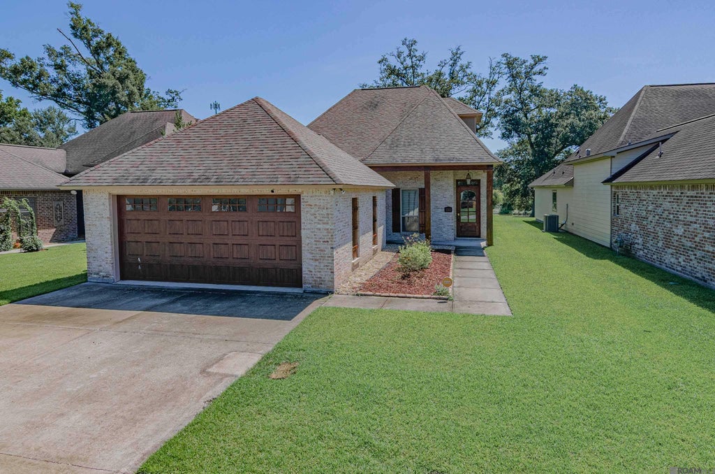 Welcome to this beautifully maintained 3-bedroom, 2.5-bath home located in the sought-after Dutchtown Meadows community in Ascension Parish. Situated on a premium lakefront lot, this two-story, 2,165 sq ft home offers exceptional craftsmanship, thoughtful design, and the peace of mind that comes with a whole-home generator. Entering the home you'll be impressed by the custom millwork, elegant finishes, and the open, airy layout that fills the space with natural light and stunning lake views. The first floor features a spacious family room centered around a beautiful brick fireplace, an office nook, and a stylish half bath for guests. The chef’s kitchen is a true highlight, boasting cypress cabinetry, granite countertops, stainless steel appliances, and a large island with an apron-front sink, perfect for both everyday living and entertaining. The primary suite is a luxurious retreat with a beadboard tray ceiling, peaceful lake views, and a large walk-in closet. The en suite bath includes dual vanities, seamless glass shower, and convenient laundry room access. Upstairs, you'll find two generously sized bedrooms and a full bath. Enjoy serene mornings and relaxing evenings on your back patio, taking in the beautiful water view and shaded green space. Just a short walk away is the neighborhood pool, offering a perfect spot to cool off and connect with neighbors. This home combines comfort, elegance, and functionality, making it a rare gem in a fantastic location. Schedule your private showing today and experience all this home has to offer!