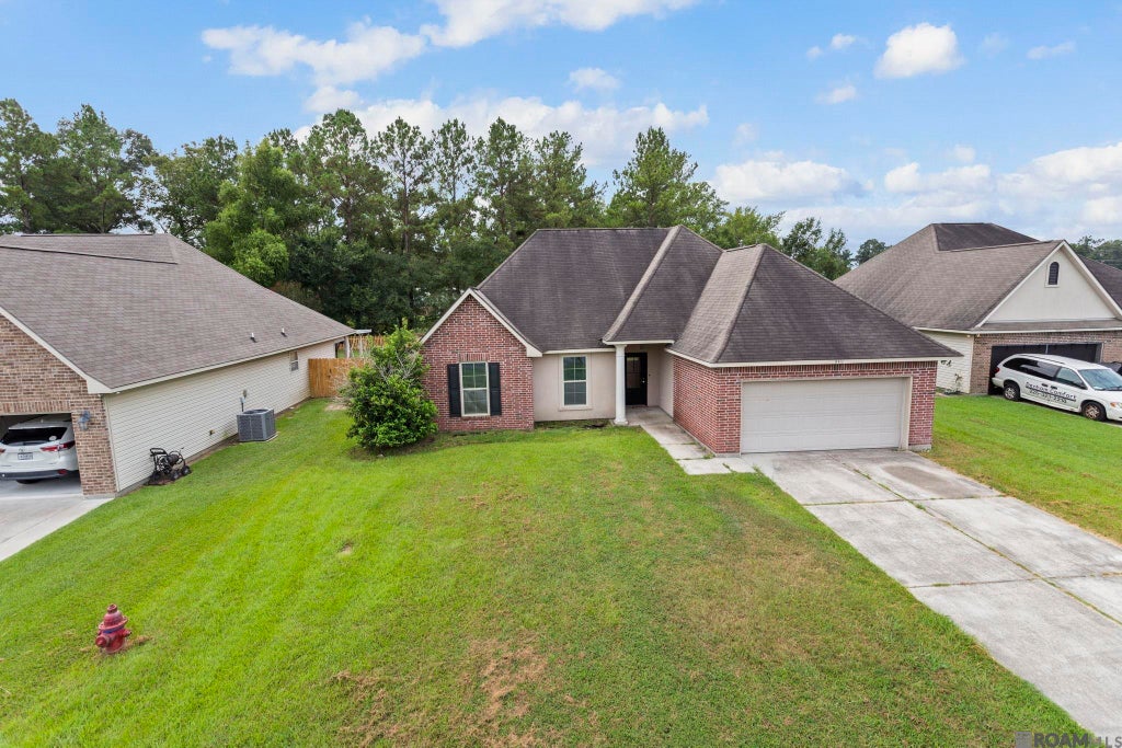 3BR/2BA brick home in Juban Parc! Open floorplan. Plenty of kitchen cabinets, counters and has granite countertops. Wood laminate floor in living room. Ceramic tile in kitchen and dining. Nice size master suite with ensuite bath has double vanities, separate shower, and garden tub. 2 car garage. Covered rear patio over looks spacious backyard. Convenient location off Juban Road in great school district. Did not flood in 2016 and does not require flood insurance. Community also offers, pool, playground, and fishing ponds. Great opportunity for homeowner.