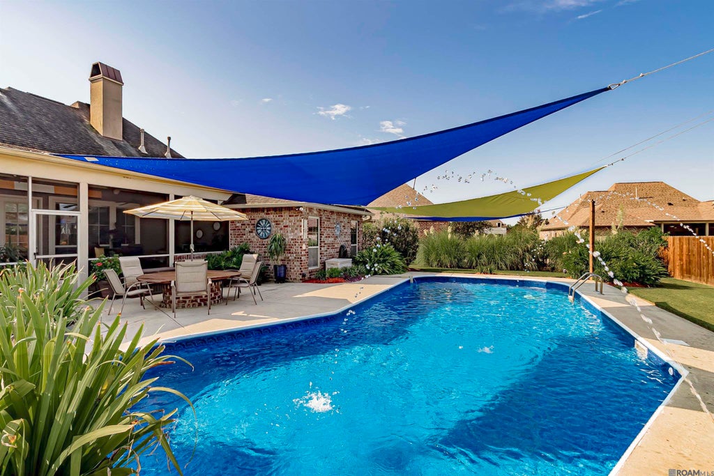 Your very own backyard paradise awaits in this custom built 3 bed, 2.5 bath home in the desirable Beaver Creek subdivision located Zachary School District! With a sparkling heated saltwater pool featuring a brand-new liner, a full outdoor kitchen with grill and island under a screened-in patio, a pergola surrounded by lush landscaping, and a dedicated outdoor half bath for ultimate poolside convenience—this home was made for entertaining! Step inside to a spacious open-concept layout accented by elegant crown molding, high ceilings, recessed lighting, split floor plan, and beautiful stained concrete flooring. The living room features built-ins, a cozy fireplace, and a wall of windows that showcase the sparkling pool. French doors open to the formal dining that could serve as a dedicated office or flex space. The kitchen is a chef’s dream with rich wood cabinetry, granite countertops, a five-burner gas cooktop, wall oven, stainless steel appliances, pantry, and a large breakfast bar. The adjoining breakfast nook is filled with natural light and a convenient computer nook. Tucked away in its own private wing at the back of the home, the spacious primary bedroom features a tray ceiling with recessed lighting & crown molding. The en-suite bath offers a multi head walk-in shower, jetted tub, dual vanities with custom cultured marble, abundant cabinetry, water closet, & his-and-hers walk-in closets with built-ins. Two additional bedrooms are located in the front wing of the home sharing a full bathroom. Off of the kitchen is a half bath & the laundry room with built-ins that double as a mud room. This home also features a three-car garage, with the third bay currently being used as a storage space. There is an electrical box wired for portable generator power and a natural gas stub-out as well. The attic is fully decked for great use. With its outdoor oasis, spacious and functional interior, and desirable location this home truly has it all!