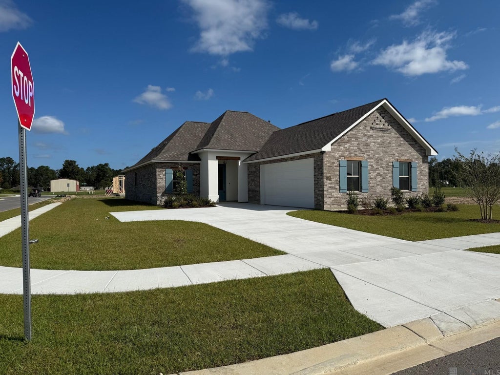 Columbus A floorplan by Level Homes READY NOW in Delaune Estates! This one story, spacious and open plan features 3 bedrooms, 2 full baths plus an office with just over 2000 sq ft! Enter this home from the charming front porch into the foyer which leads you to the office and then the open living and dining room. The living room features a vent-less gas fireplace with wood trim casing, quartz surround and a milled mantle and custom built in wall units. The kitchen is separated from the dining area by an exposed beam and features custom painted cabinets with under cabinet lighting and 5" hardware pulls, large center island with sink and two overhanging pendant lights, 3 cm Carrara Luxe quartz countertops, glossy white subway tile backsplash, stainless appliance package including 36" gas cooktop and single wall oven and a walk-in corner pantry. The master suite is located off the rear of the home and features a spa like bath with a separate tub and custom job built tiled shower with a seamless shower door, framed mirrors, dual sinks with quartz countertops and a huge walk-in closet! Bedrooms 2 and 3 are on the opposite side of the home and share a hall bath. The spacious laundry room with a built-in base and upper cabinetry and a linen closet is located off the kitchen. There is a mudroom located off the garage entry with space for an "optional" built-in mud bench or desk. The yard is professionally landscaped and fully sodded. Other lots/plans available. Delaune Estates is one of Ascension’s newest communities in Dutchtown, built by Level Homes and located off of HWY 73 and I-10! This development features multiple ponds, waterfront lots, bridge and a community pool with pavilion. Various home sites and floor plans to fit all of your needs. Come take a tour of this vibrant new community today!