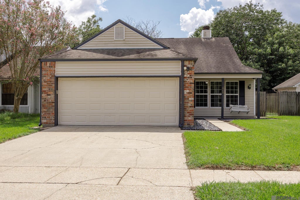Cute starter home at 543 Hadley Drive has 3 beds 2 bath with an enclosed 2 car garage in Meadow Bend Subdivision conveniently located near LSU and Bluebonnet. Walk up the side walk to a front porch, porch swing, and the nestled front door entry. Enter into the open concept living room and dining area. The living room features built in bookcases, a wood burning fireplace, a custom wood mantel, and three windows allowing the natural light to flow in the space. The renovated kitchen has lots of cabinet space, stainless appliances, smooth top cooktop & oven, dishwasher, microwave hood vent plus a pantry. Master suite has private en-suite with dual vanities and a walk-in closet. Door from the master suite leading to covered patio overlooking the fenced in back yard, shaded by mature trees. This is a great property for your college student, small family or first-time home buyer.