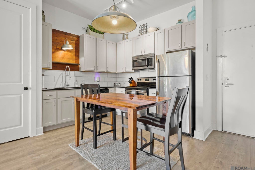 Are you looking for a condo within walking distance of the LSU campus? This one is located near the South Gates entrance. Appreciate the modern industrial feel to this complex. Notice the tall ceilings throughout and high end finishes. No carpet in this unit. Lovely wood flooring throughout. Appealing interior brick wall in the main living area as well as a chalkboard wall with docking station. Stainless Steel appliances and stackable washer and dryer included. The landscaped courtyard offers a BBQ grill and plenty of seating provided. No worries about safety here. The complex is gated with card access into the building. This unit comes with two assigned parking places. What are you waiting for??!!
