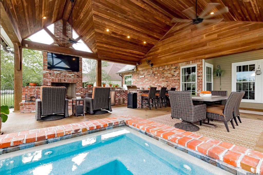 This spacious 5-bedroom home offers the perfect combination of comfort, updates, and outdoor living. Inside, you’ll find four bedrooms conveniently located downstairs with an additional bedroom, full bath, and large bonus room upstairs ideal for a game room, media space, or guest suite. The updated kitchen features modern finishes and flows easily into the living and dining areas, creating a great space for entertaining. The large primary suite is a true retreat with an ensuite bath that includes a double vanity, large corner tub, separate shower, and a generous walk-in closet .Step outside and you’ll discover an entertainer’s dream. The large covered patio with vaulted ceilings, full outdoor kitchen, dining area and wood-burning fireplace overlooks an inground pool with hot tub and stunning lake views. Whether hosting gatherings or enjoying quiet evenings, this backyard delivers it all. With a new roof and careful upkeep throughout, this home is move-in ready for its next owners to enjoy for years to come. Make your appointment today!