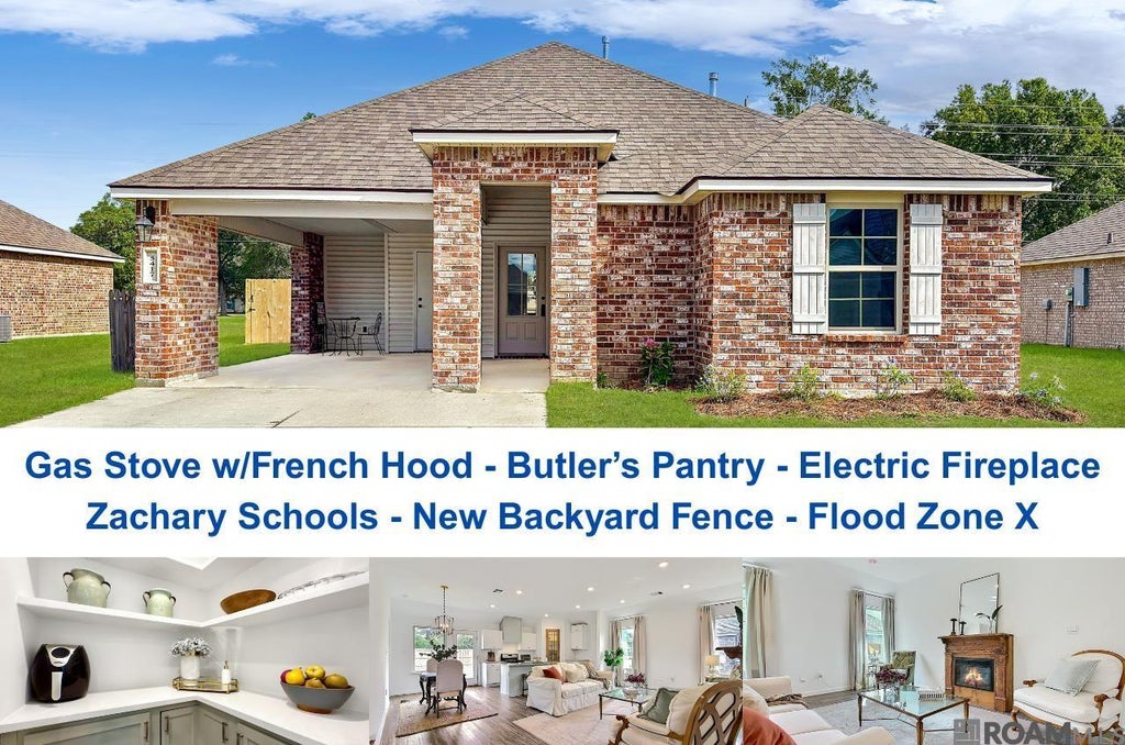This beautifully remodeled home is nestled in Zachary, one of the Top School Districts in the state, making it an ideal choice for young families. This pristine property is truly better than new, featuring modern upgrades and No Carpet for easy maintenance. The kitchen and baths are adorned with elegant Granite Counters and enhanced by new beautiful light fixtures and ample recessed lighting. The home boasts a desirable Open Floor Plan in the living areas, with a split design that places the master suite in the private rear corner and guest bedrooms at the front opposite corner. The kitchen amenities include a Gas Stove with a custom French Hood, a spacious Island with a sit-down bar and sink overlooking the living room, and a modern Farmhouse Door leading to a corner Butler’s Pantry with custom shelving and cabinetry with a quartz counter and Lazy Susan – giving extra space for food preparation and storage. The living room centers around an exquisite Farmhouse Mantle with a built-in Electric Fireplace, adding charm and warmth. The master suite offers a generous bedroom, a Garden Tub with surround and shower, and a large Walk-In Closet. The backyard features a brand new wooden privacy fence, making it a perfect retreat to relax after a long day or let the kids loose – and if the kids needs more room the neighborhood playground is right around the corner. Situated in Flood Zone X, No Flood insurance is required, offering peace of mind and savings. Plus, this home is eligible for 100% Rural Development financing. Don’t miss the opportunity to view this Beautiful Home—Call Today for your private showing!