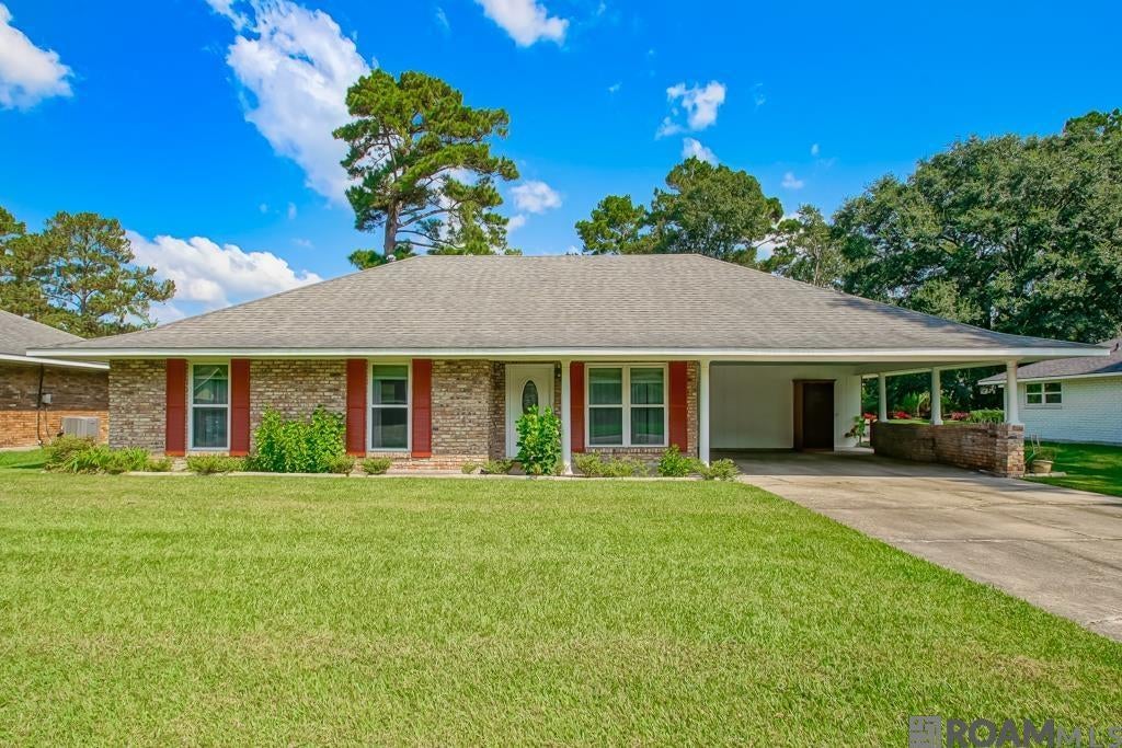 Welcome to this beautifully maintained and updated 3-bedroom, 2-bath home that blends comfort and convenience. Step inside to find a bright, open living area featuring wood floors, a brick fireplace, and plenty of space to gather. The updated kitchen is a standout with white cabinetry, granite countertops, modern backsplash, stainless steel appliances, and a breakfast bar overlooking the living space. The primary suite offers a private retreat with an en-suite bathroom featuring a tiled walk-in shower and granite vanity. Two additional bedrooms share a second updated bathroom with a double vanity and stylish tile surround. Out back, enjoy a covered patio perfect for entertaining, a fenced yard for pets or play, and a carport with additional storage. This home is move-in ready and located in an established neighborhood close to schools, shopping, and dining.