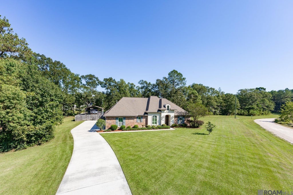 RV parking, over a Half acre, and custom built, this home offers the ideal balance of comfort, convenience, and charm. Located between Juban Crossing and the Denham Springs Antique District, you’ll enjoy easy access to shopping, dining, local attractions, and I12. The open living area is designed for both everyday living and entertaining, with seamless flow between the dining and kitchen areas. The kitchen features top tier stainless steel appliances, pot filler, granite countertops, gas range, a walk in pantry, large center island, and ample cabinetry. The primary suite features an ensuite bath with double vanities, custom cabinetry, a soaking tub, and a separate tiled shower. Step outside to enjoy the extended, covered rear patio, featuring insulated paneling installed less than a year ago. This home is generator-ready and the shed is equipped with electricity for added convenience. The RV cover is wired with a 50-amp plug and lined with LED lighting on both sides. Soffit lighting around the exterior adds a warm, welcoming glow to the home. With no carpet, modern finishes throughout, & an inviting outdoor space, this is a home you’ll want to see!
