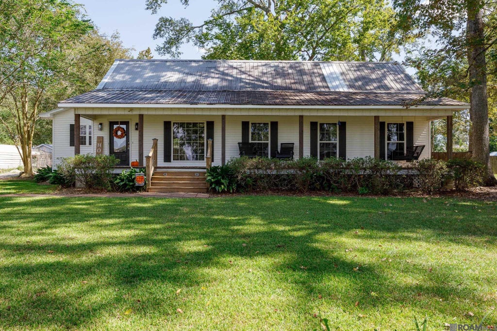 Welcome to this adorable updated 3-bedroom, 2-bath home offering 2,172 sq ft of living space on 1.10 acres. The open floor plan features gorgeous wood floors throughout—no carpet! The beautiful kitchen is equipped with a gas stove, double oven, stainless steel appliances, breakfast bar, and pantry. The spacious primary bedroom includes its own en-suite bath with a relaxing tub, separate shower, and walk-in closet. Newly painted ceilings, plus new exterior paint on the doors and shutters. Nearly every light fixture and ceiling fan has been replaced, adding modern touches while maintaining charm. Step outside to enjoy covered porches on both the front and back, with improvements including added posts for support, new deck boards, and updated railings and stairs. A covered carport and plenty of parking provide convenience, while the powered workshop and powered storage shed add versatility for hobbies, storage, or pets. Exterior, concrete, and workshop all freshly pressure washed. No HOA! No Flood Insurance Required! Fridge, washer, & dryer to remain! This property has the space, updates, and extras you’ve been looking for! Don’t miss the chance to make this move-in ready home yours…schedule your private showing today before it’s too late!