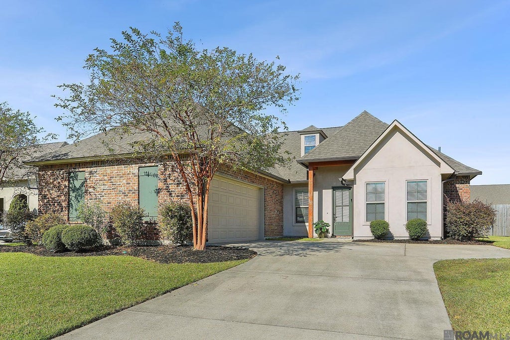Welcome to this stunning 4BR/3BA home with an incredibly open floor plan and freshly painted interior. NEW ROOF!!! The home showcases beautiful wood beams, wood floors, and a spacious living room perfect for gatherings. The kitchen is a chef's dream, featuring a large island, granite countertops, stainless appliances, a wall oven and microwave, and a gas cooktop. The Living Room is very spacious with gas log fireplace and built-ins on each side. The home is CARPET-FREE, with newer flooring in the bedrooms. The primary suite offers separate vanities, a custom built shower, a soaking tub, and a large walk-in closet. A formal dining room adds a touch of elegance to the layout. Step outside to enjoy the fenced backyard, complete with a covered patio with ceiling fans, ideal for entertaining. The home also features gutters on the back and partial gutters on the front. This property combines style, comfort, and functionality - don't miss the opportunity to make it yours. NEIGHBORHOOD POOL.