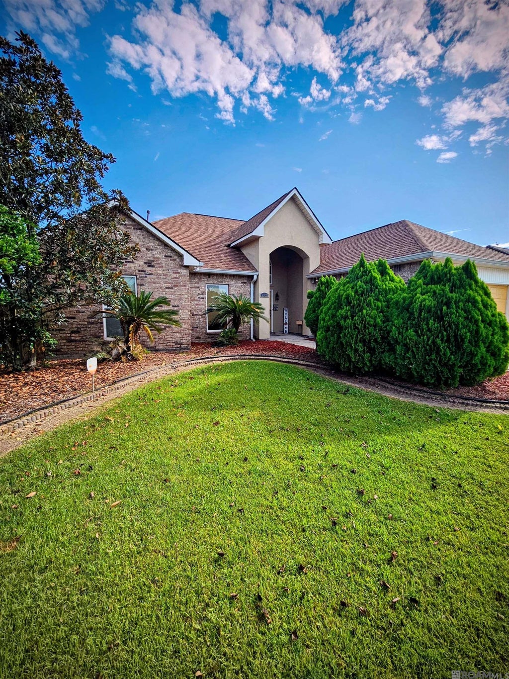 Come home to peace and serenity! This stunning home sits on a fully stocked lakefront with direct access right from your backyard, perfect for relaxing or fishing at your leisure. Enjoy picturesque water views framed by mature fruit trees and a wooden privacy fence. Inside, large windows fill the home with natural light overlooking the water. The primary suite features a luxurious bath with a custom shower, garden tub, and a spacious cedar-lined walk-in closet. Roof was just replaced. Beautiful curb appeal, no flood insurance required, and conveniently located just five minutes from the I-10 interstate. This home is a must see!